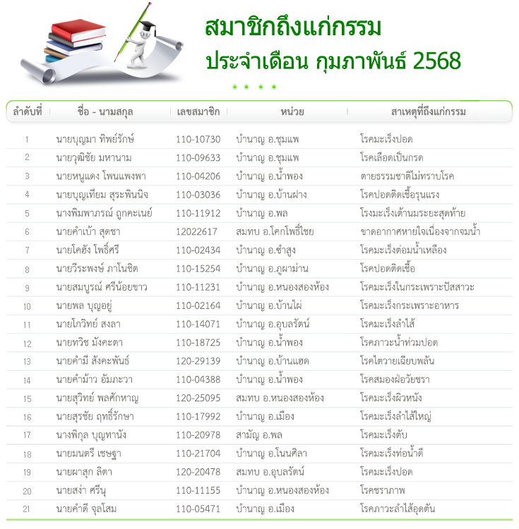 ประกาศ จำนวนสมาชิก ประจำเดือน กันยายน 2568